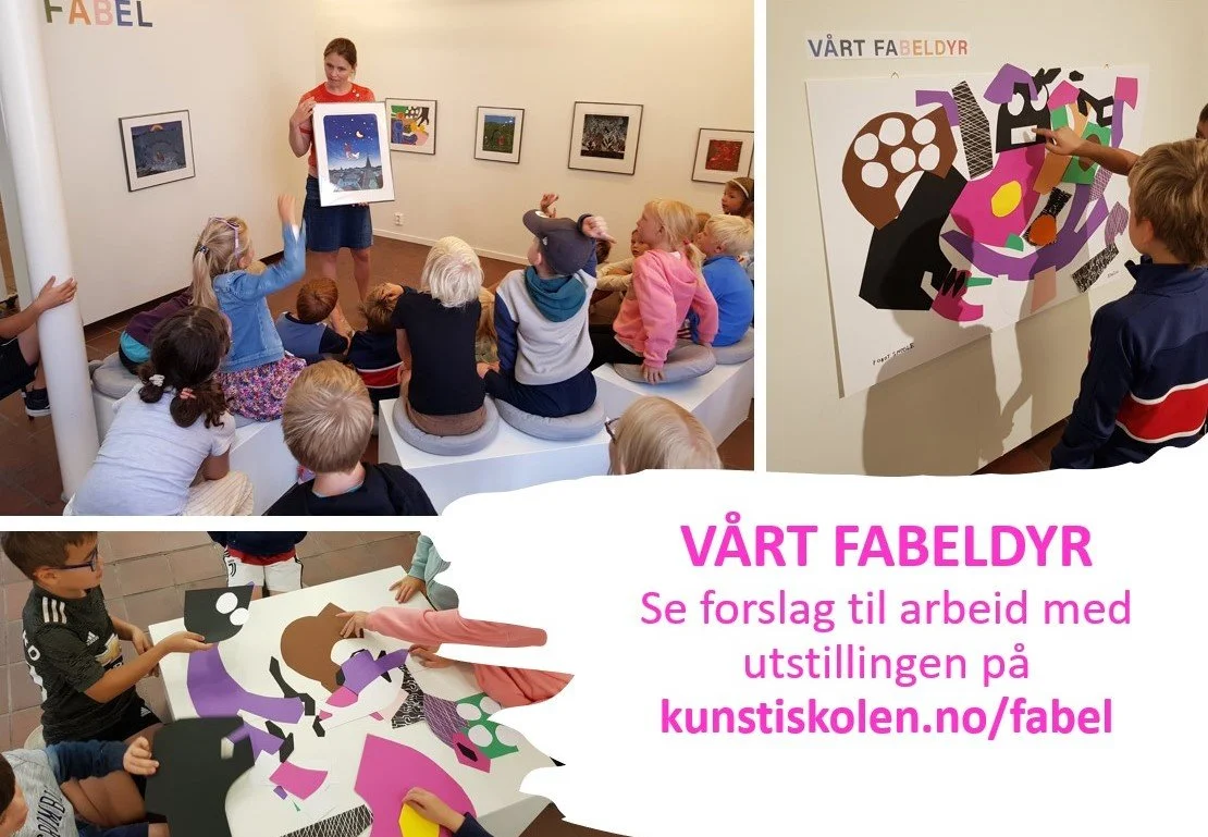 Vi bruker utstillingen FABEL som eksempel og viser ulike måter barna kan være aktive og skape egne kunstneriske og kulturelle uttrykk på.